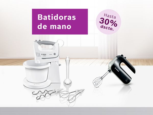 Prueba toda la tecnología alemana de nuestras batidoras de mano Bosch. Disfruta de su diseño, distintos accesorios y aprovecha esta oportunidad para comprar tu producto favorito Bosch con hasta 30% de descuento en el Cyber Bosch.